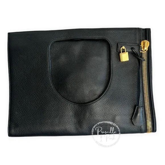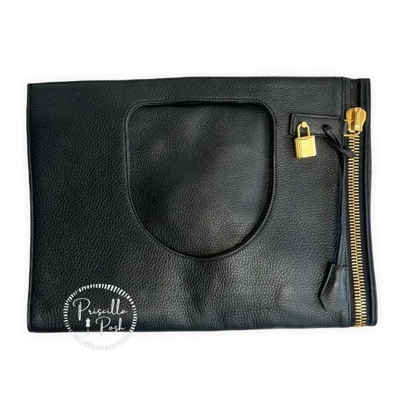 Tom Ford Large ALIX Leather Padlock & Zip Clutch Shoulder