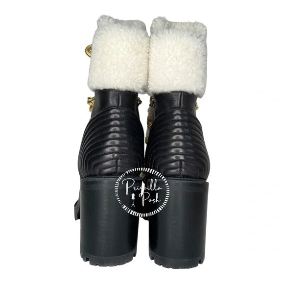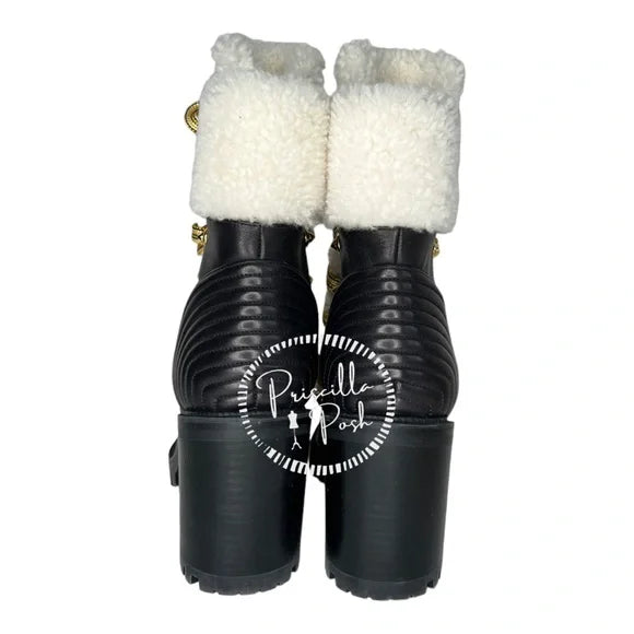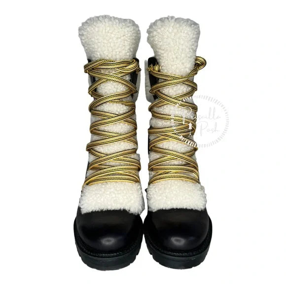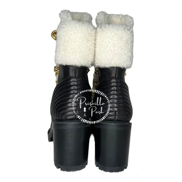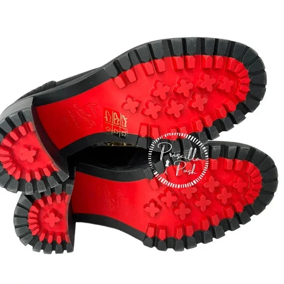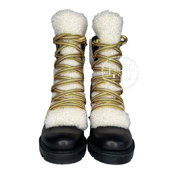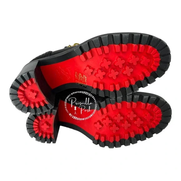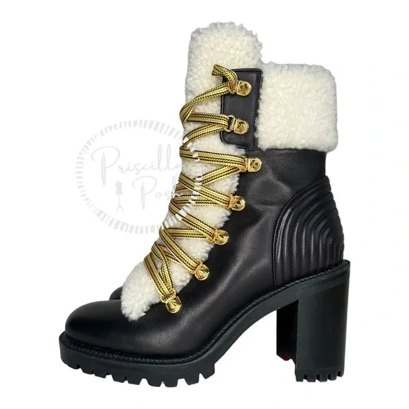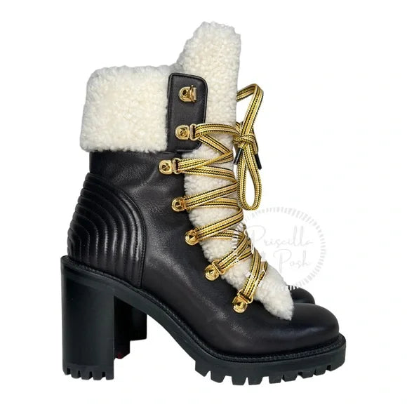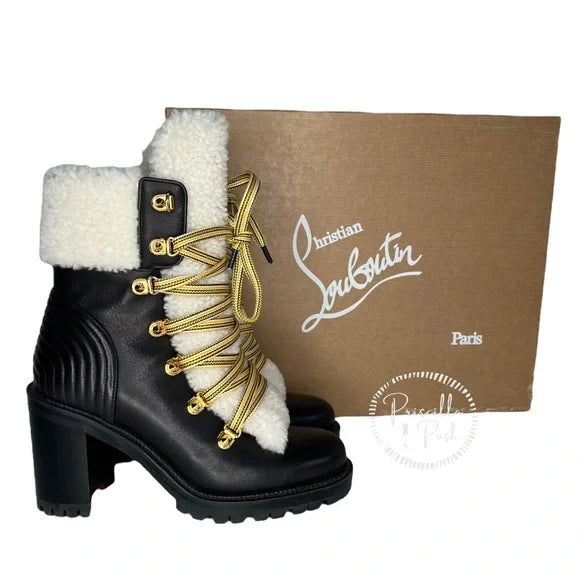 NWB Christian Louboutin Black Calfskin Shearling Yetita 70 combat Hiker Boots 35.5