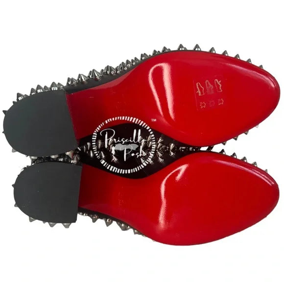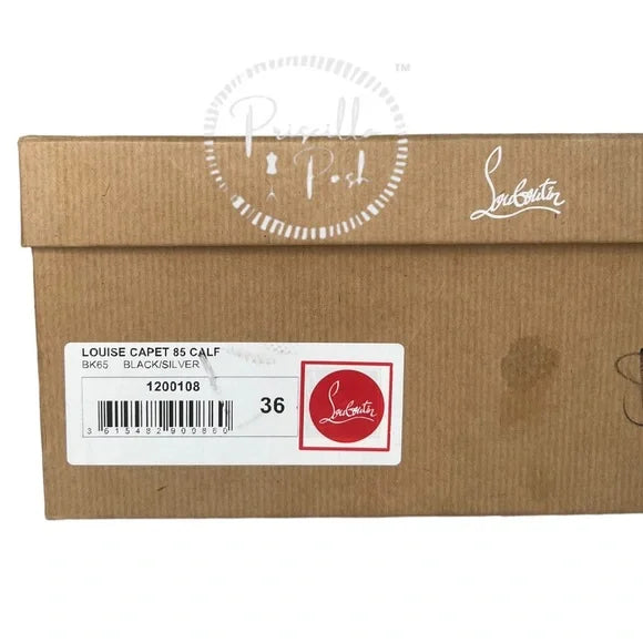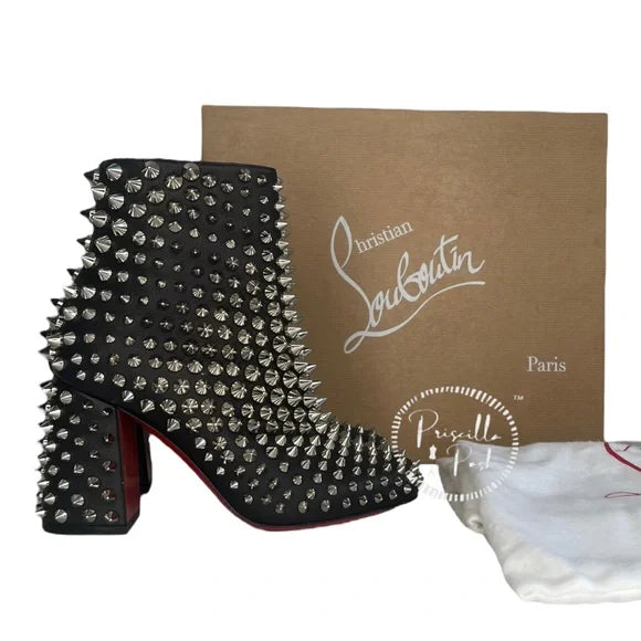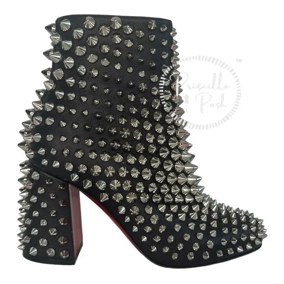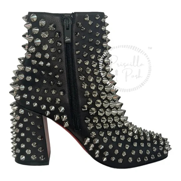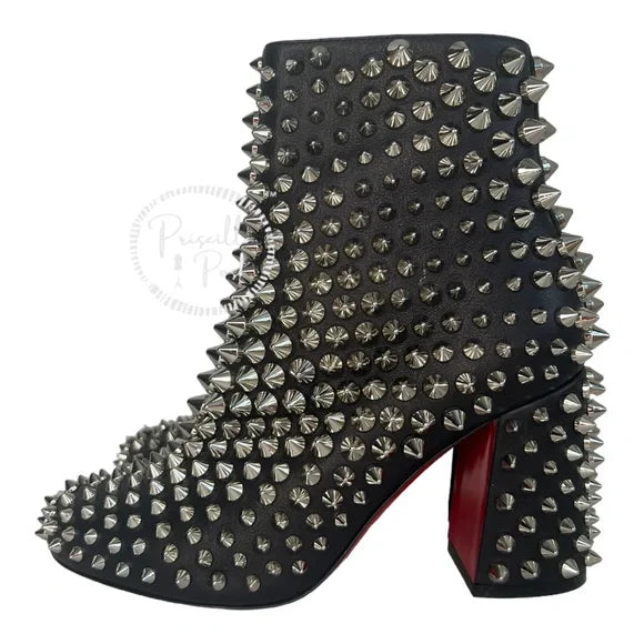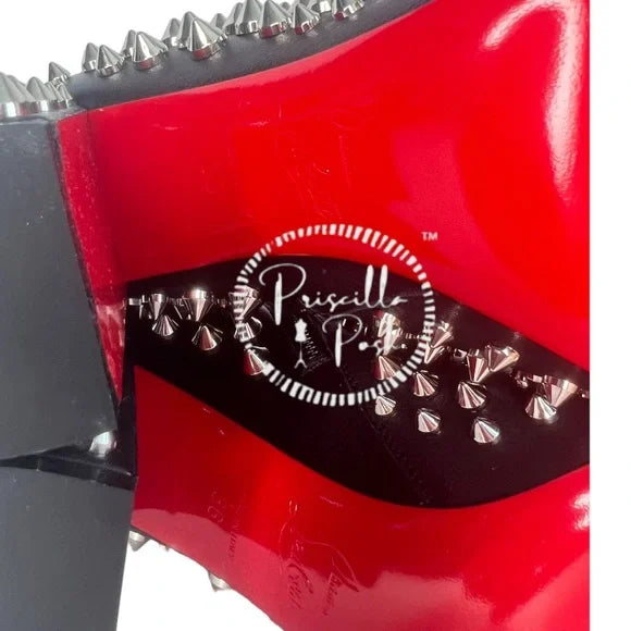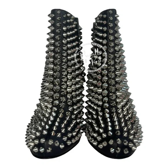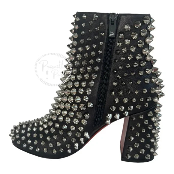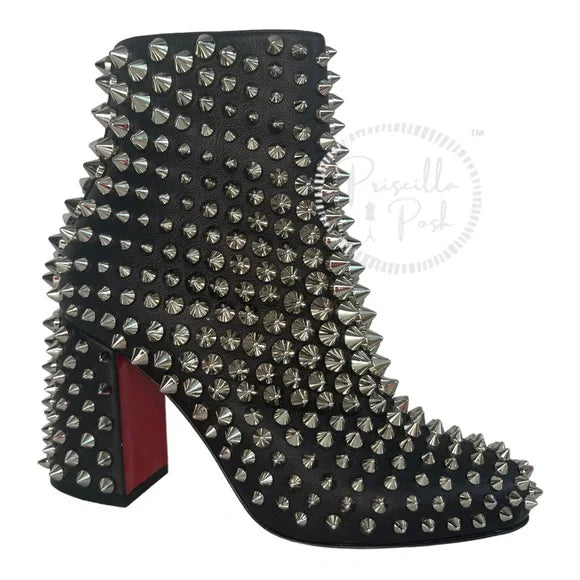 NWB Christian Louboutin Calfskin Louise Capet Spikes 85 Boots Black Silver Stud 36