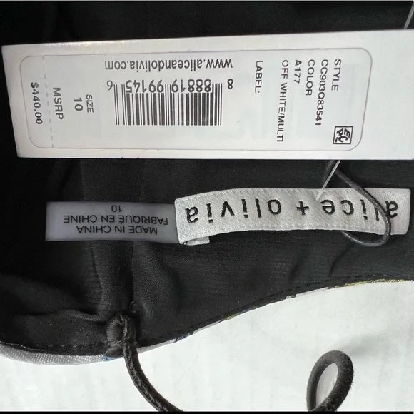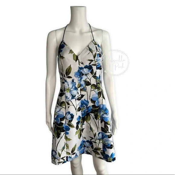 NWT Alice + Olivia Tayla Mini Dress in Off White & Multi Blue Floral Fit and Flare