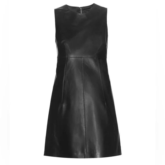NWT Dolce and Gabbana Leather A-Line High Neck Shift Dress