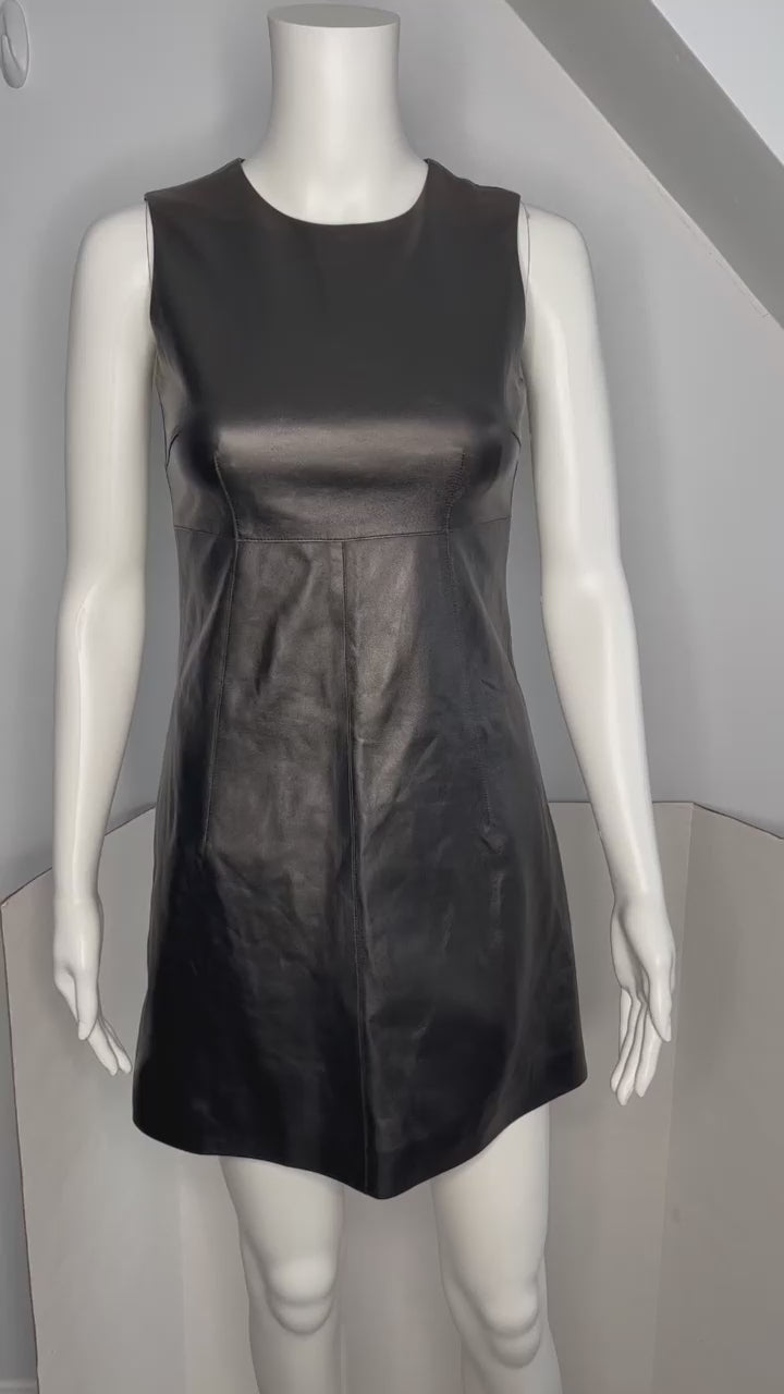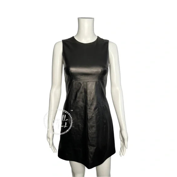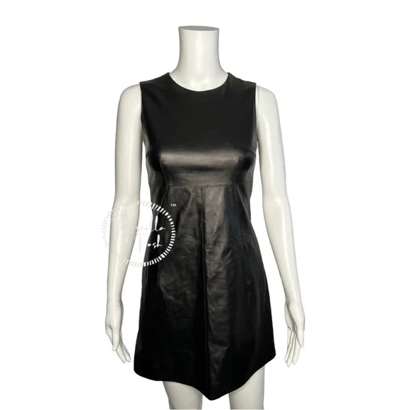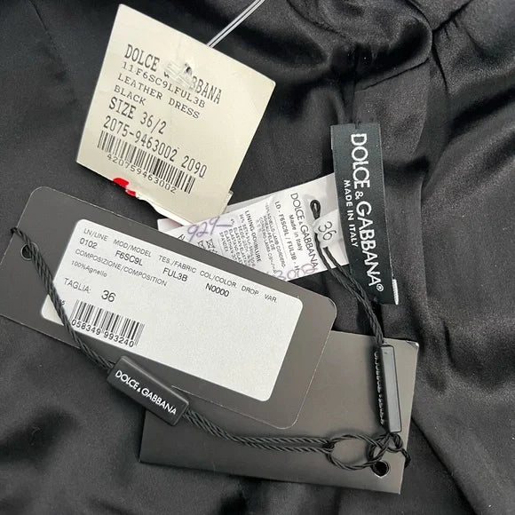 NWT Dolce and Gabbana Black Leather A-Line Mini Dress