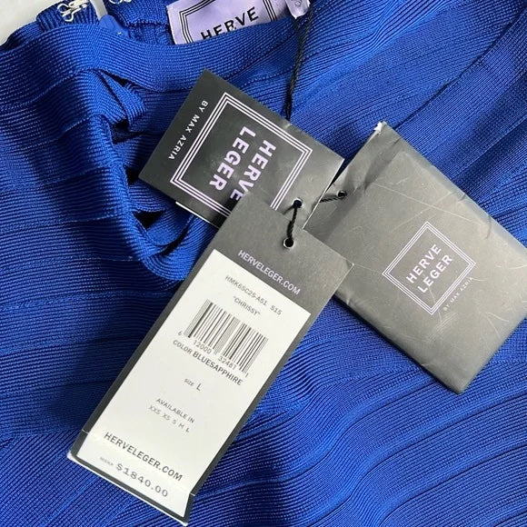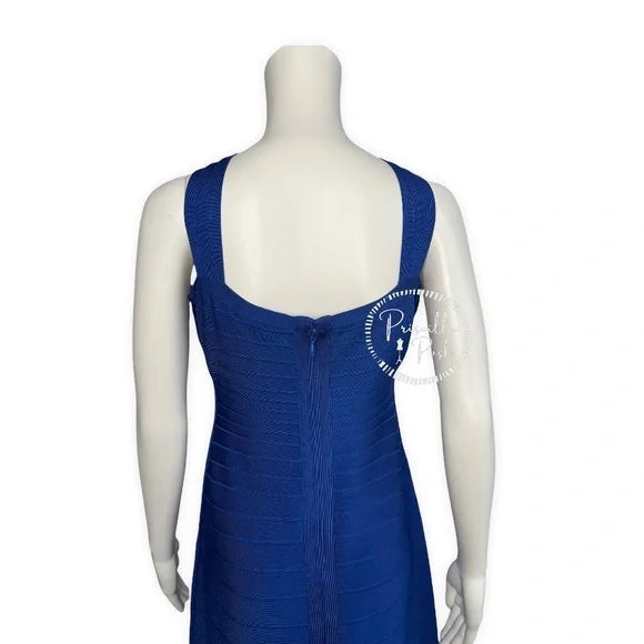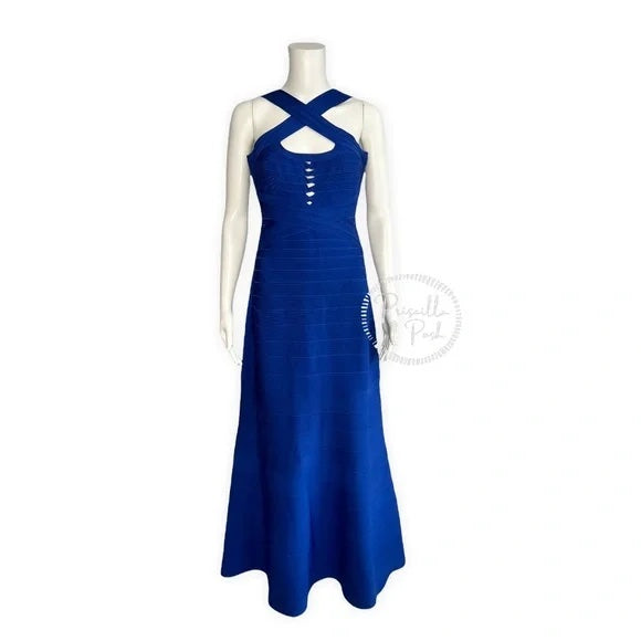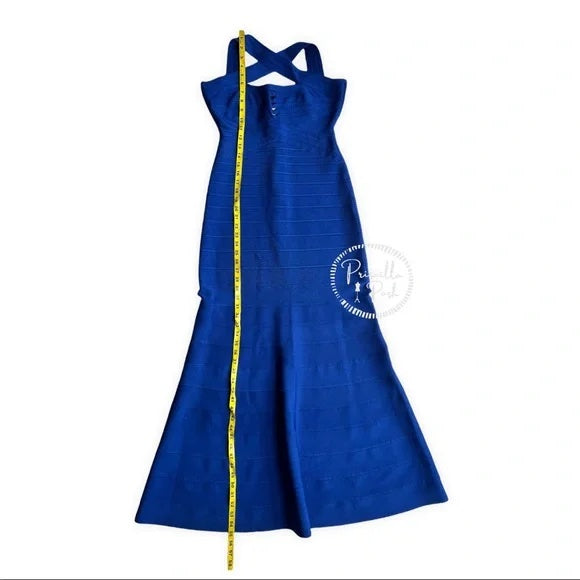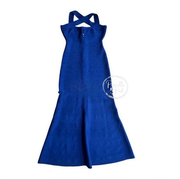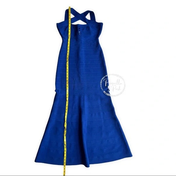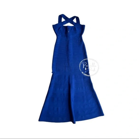 NWT Herve Leger Chrissy Cross-Strap Mermaid Bandage Gown Royal Blue