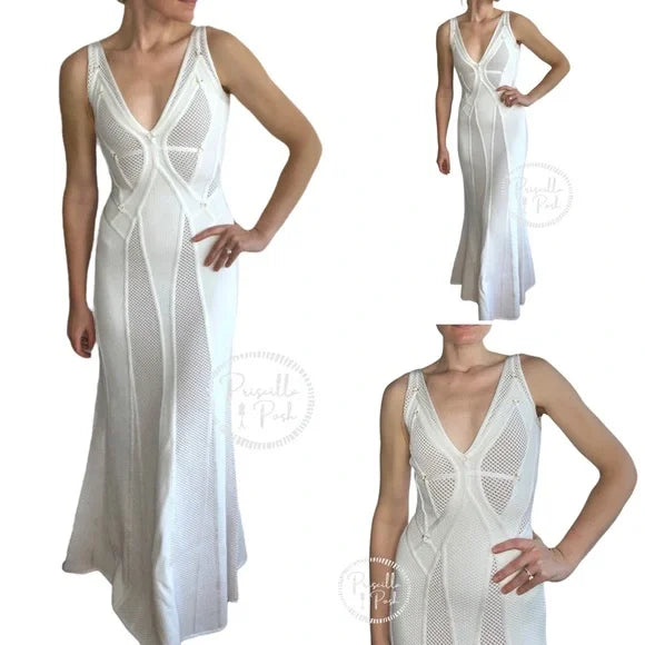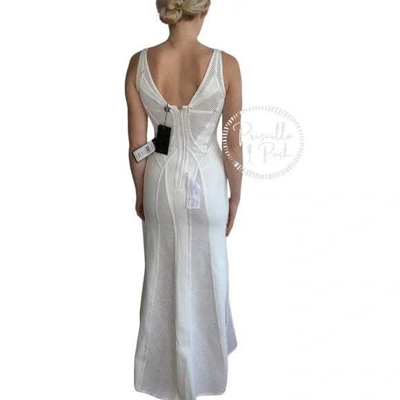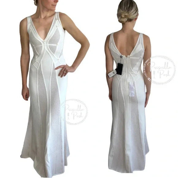 NWT Herve Leger White Gown Mesh Paneled Ivory Nude Bridal Wedding Evening small