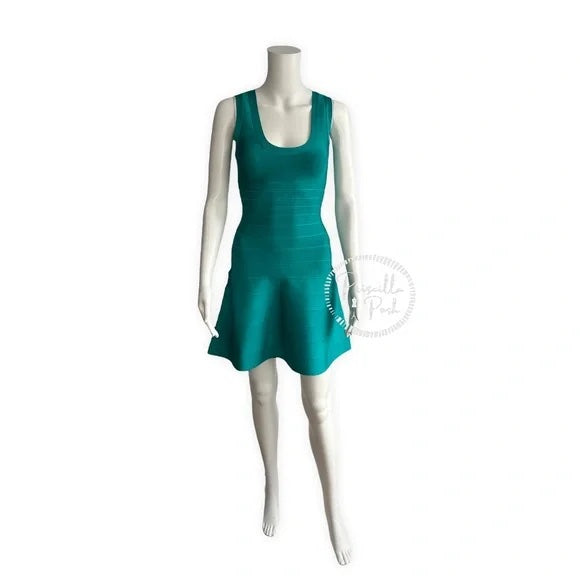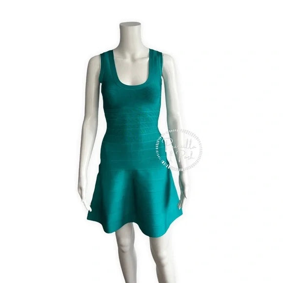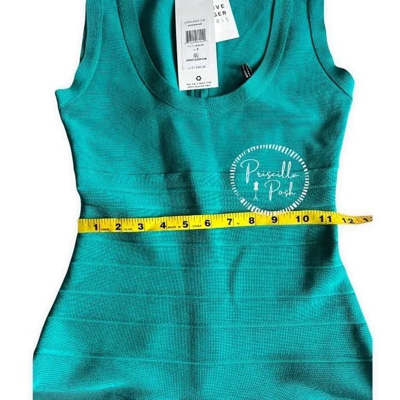 NWT HERVE LEGER Women's Sleeveless Bandage Dress In Turquoise
