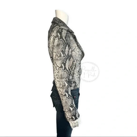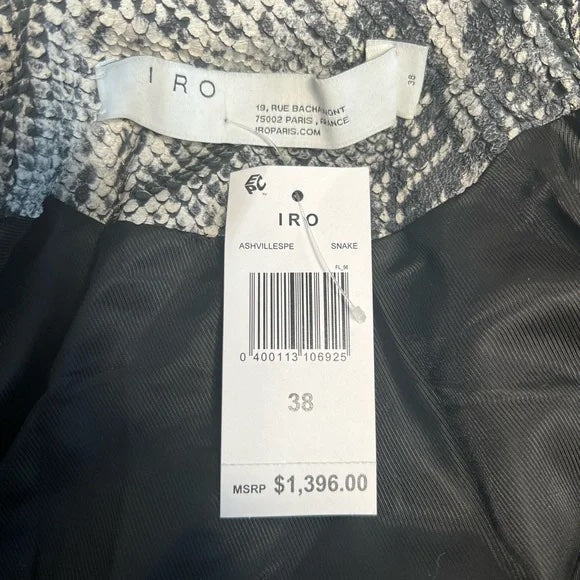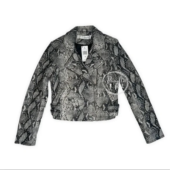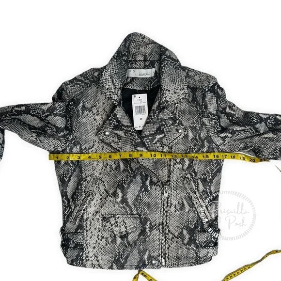 NWT IRO Ashville Snake Embossed Leather Moto Jacket Python Jacket White Black 38
