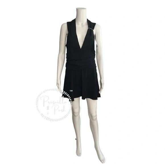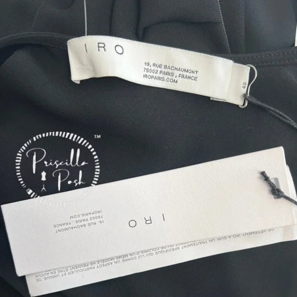 NWT IRO Biron Black Dress V Neck Pleated Draped Babydoll V-Neck Cocktail