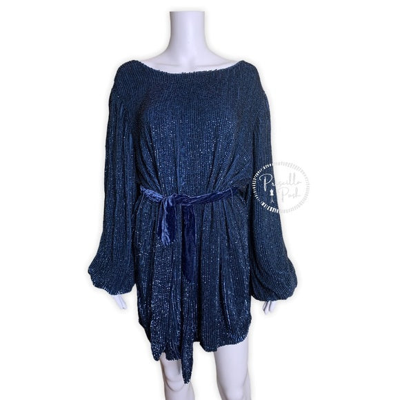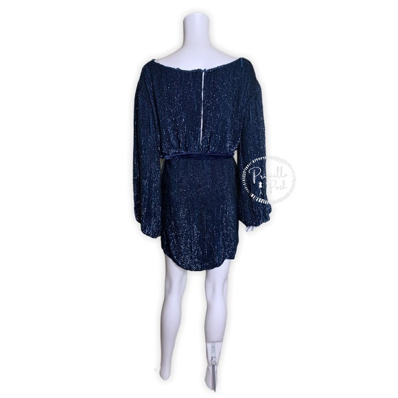 NWT Retrofete Selma Sequin Dress Navy Blue