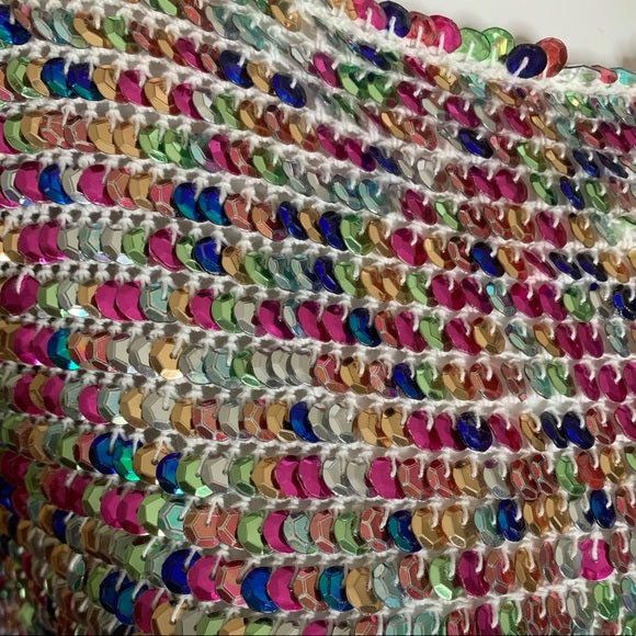 NWT RETROFETE Tara Crochet Dress Rainbow Sequin