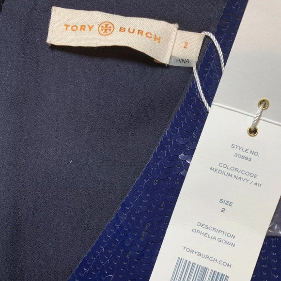 TORY BURCH Ophelia Red & Blue Sequin Gown