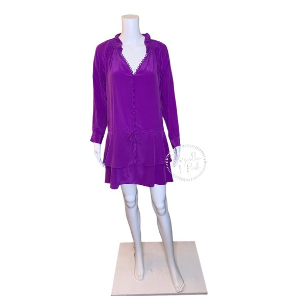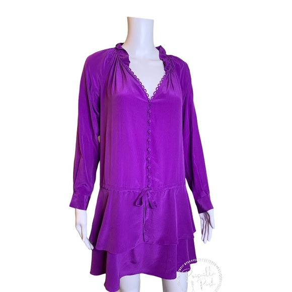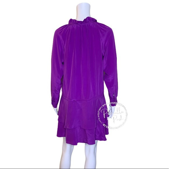 Rebecca Taylor 100% Silk Long Sleeve Ruffle Drop Waist Dress