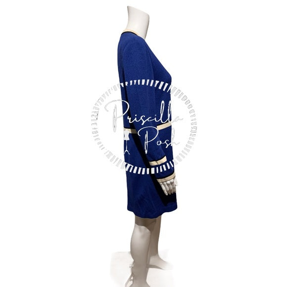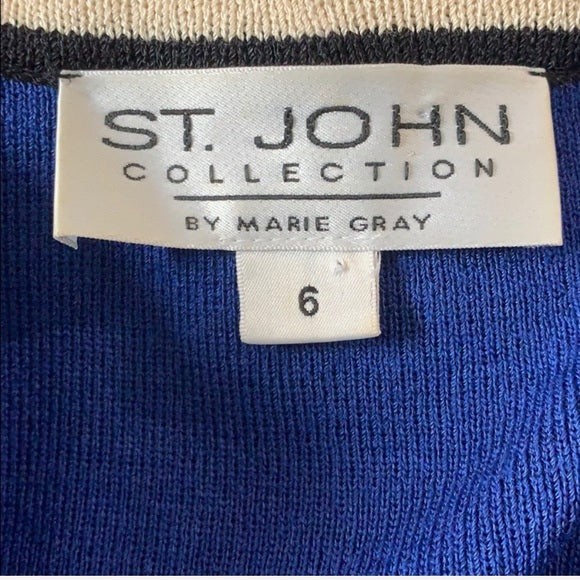 Gorgeous blue with cream and black trim. Gold buttons. Gorgeous to pair with a sheath dress!
