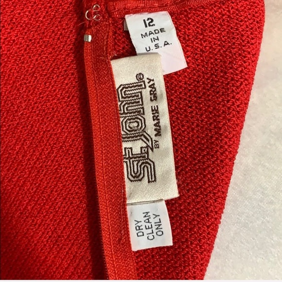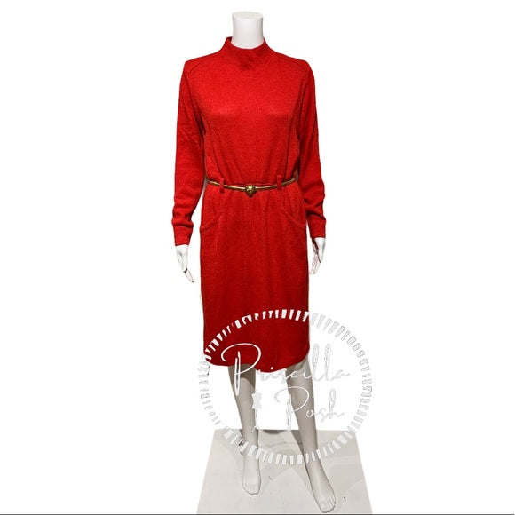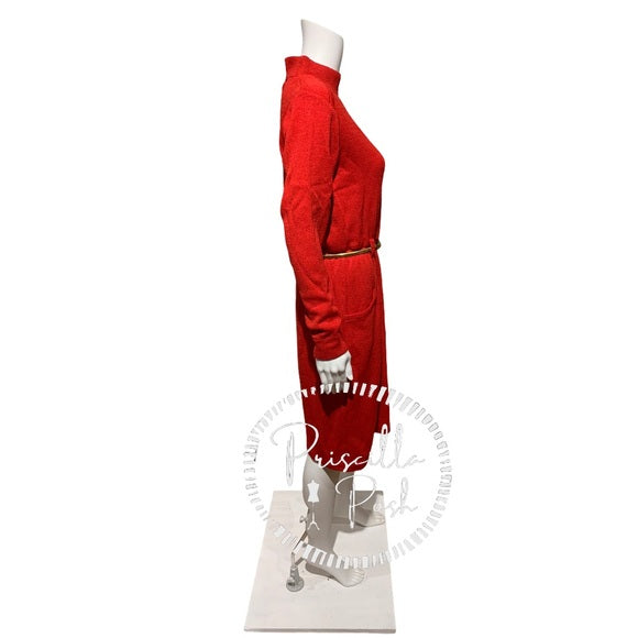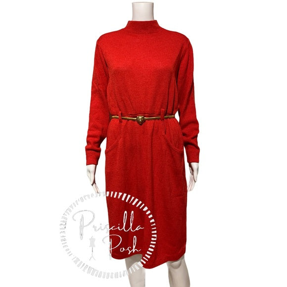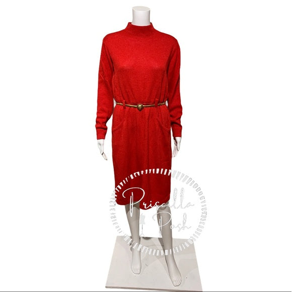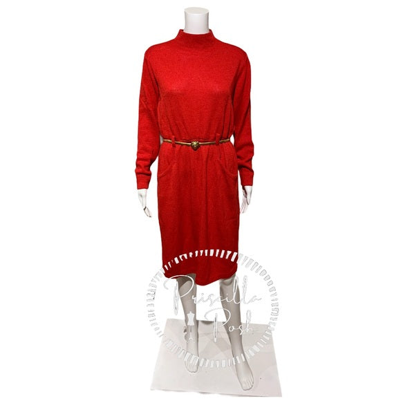 St. John Red Mock Neck Long-sleeve Santana Knit Sweater Dress Vintage