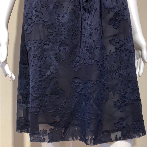 Tory Burch Navy Silk Lace Appliqué Ruffle Dress 6