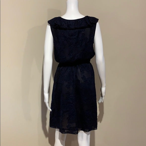 Tory Burch Navy Silk Lace Appliqué Ruffle Dress