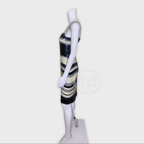 Tory Burch Runway Sequin Edna Dress Navy Cream