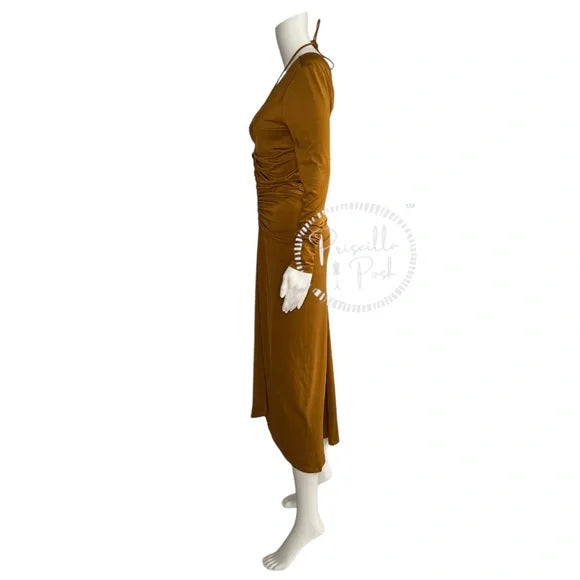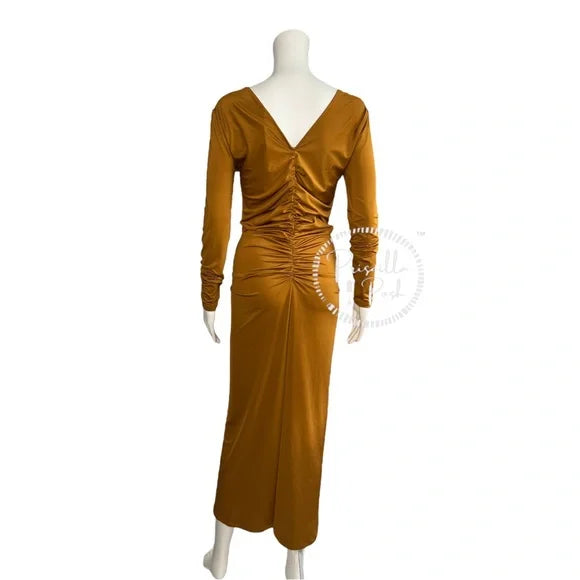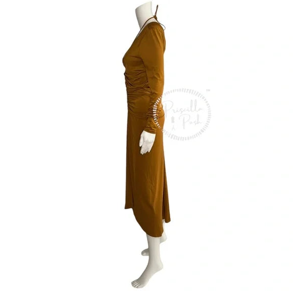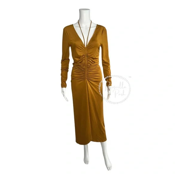 Veronica Beard Gilbert Ruched Long Sleeve Dress Yellow Gold Midi